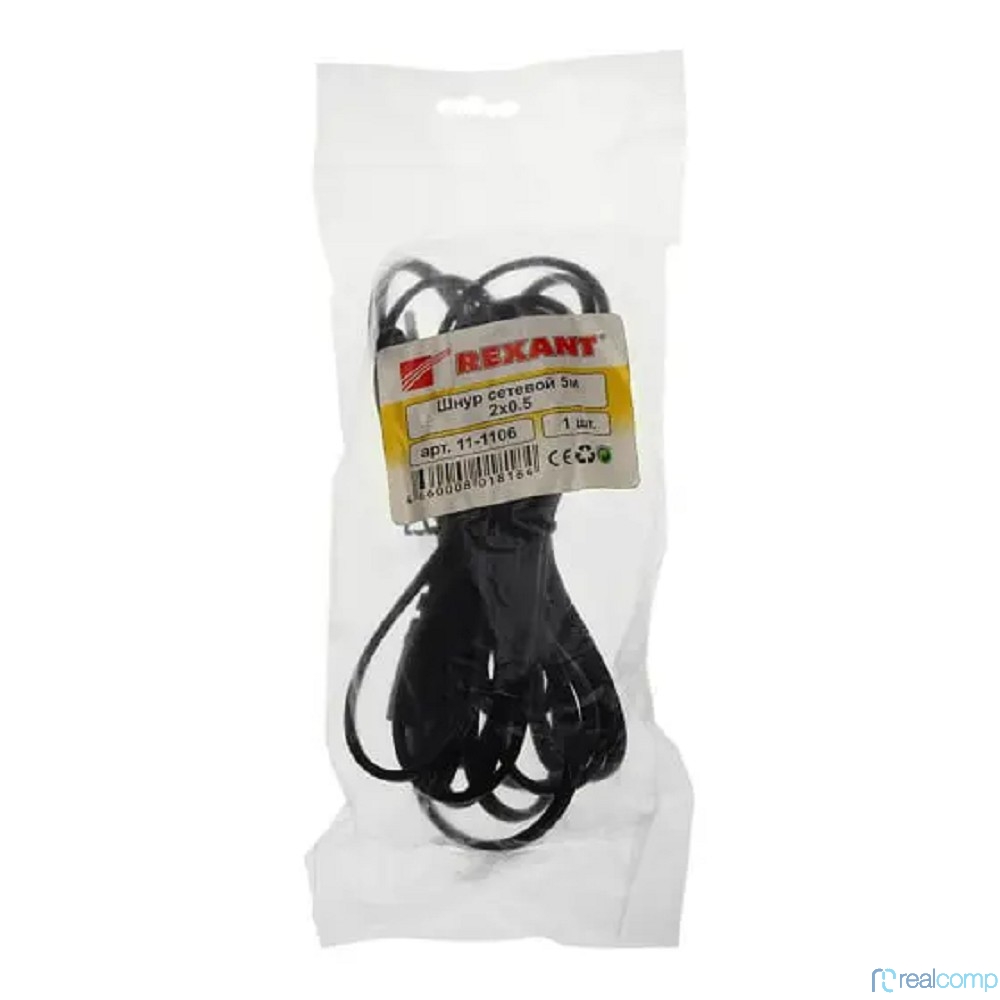 Rexant (11-1106) Шнур сетевой, вилка СЕЕ 7/16 - разъем IEC 320 C7, кабель 2x0,5 мм?, длина 5 метров (PE пакет)