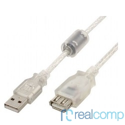 Cablexpert Кабель удлинитель USB2.0 Pro, AM/AF, 2м, экран, 2 феррит.кольца, прозрачный (CCF-USB2-AMAF-TR-2M)