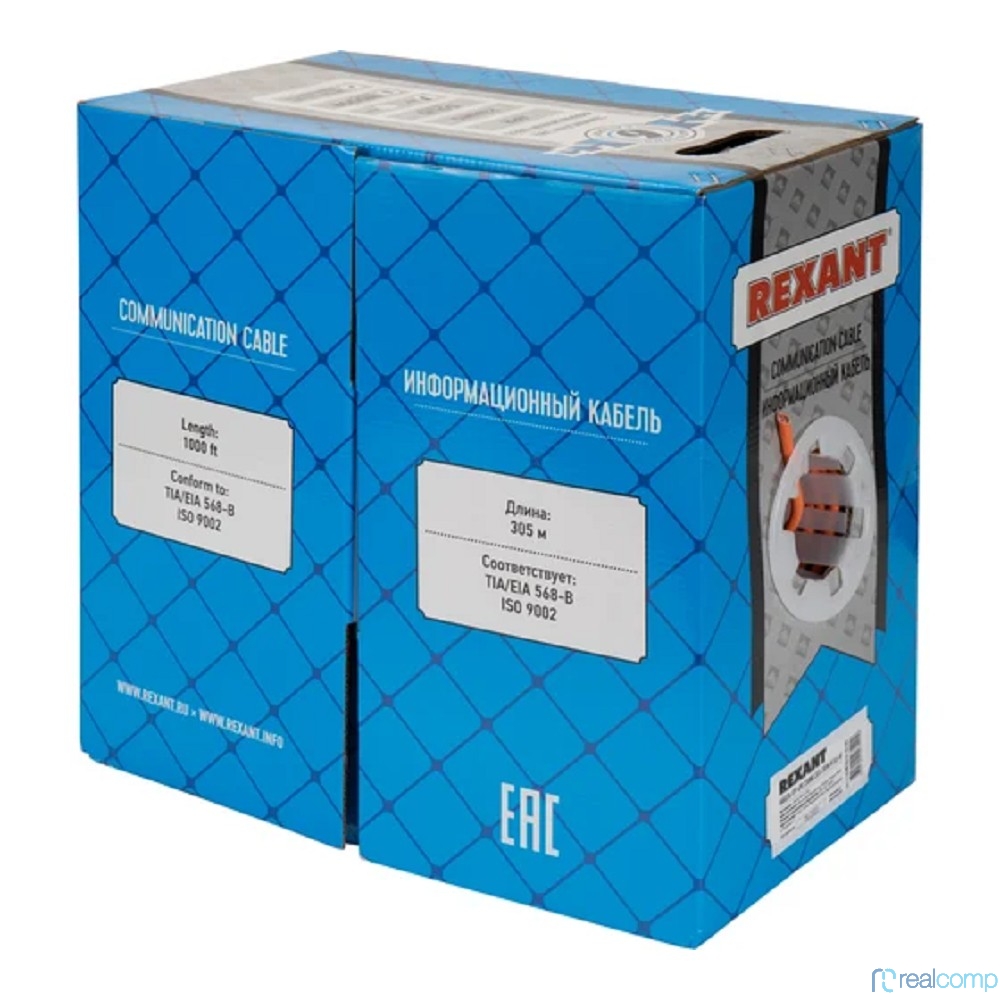 Rexant (01-0050) Кабель витая пара U/UTP, CAT 6, ZH нг(А)-HF, 4PR, 23AWG, INDOOR, SOLID, оранжевый, 305 м