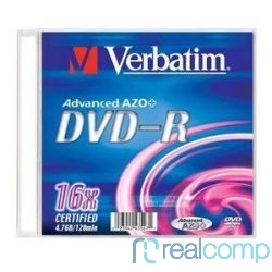 Verbatim Диски DVD-R Verbatim 16-x, 4.7 Gb, (Slim Case) [43547] (отпускать поштучно)