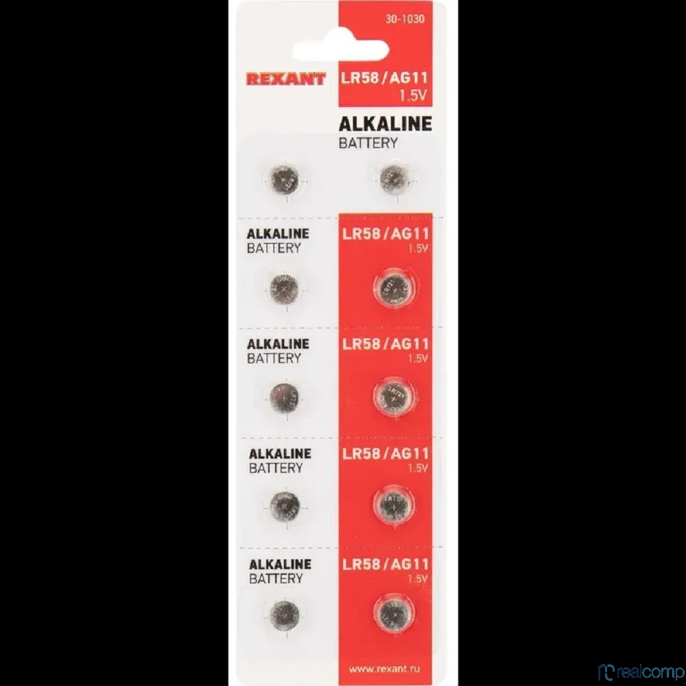 Rexant (30-1030) Батарейка часовая LR58, 1,5В, 10 шт блистер (AG11, LR721, G11, 162, GP62A, 362, SR721W)