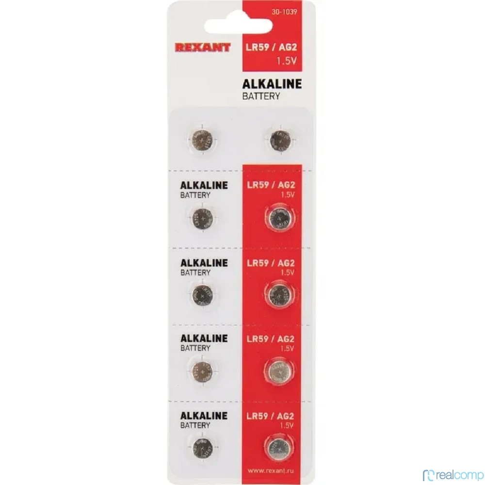 Rexant (30-1039) Батарейка часовая LR59, 1,5В, 10 шт (AG2, LR726, G2, 196, GP96A, 396, SR726W) блистер
