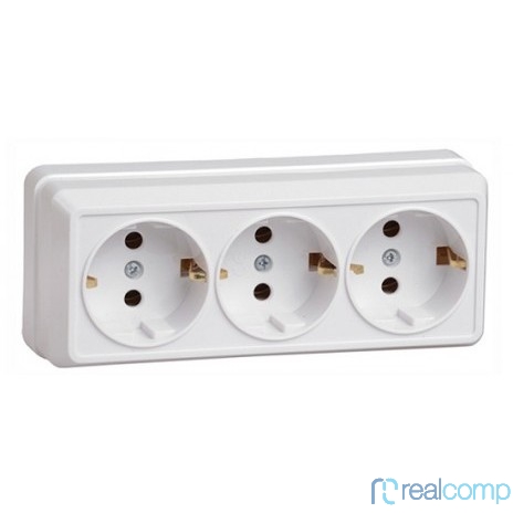 Iek ERO31-K01-16-DC РС23-3-ОБ Розетка 3местн. с з/к 16А откр.уст. ОКТАВА (белый)