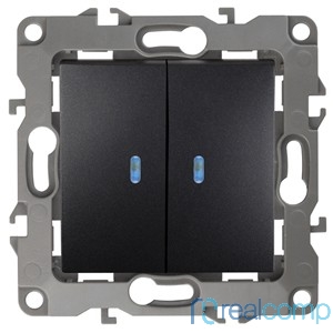 Эра Б0014661 12-1105-05 Выключатель двойной с подсветкой, 10АХ-250В, Эра12, антрацит