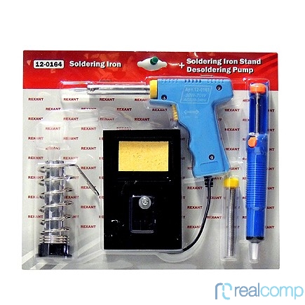 REXANT (12-0164) Набор для пайки (паяльник импульсный 30/70 Вт, оловоотсос, подставка, припой)