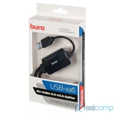Buro BU-HUB4-0.3-U2.0-Splitter Разветвитель USB 2.0, 4порт. черный