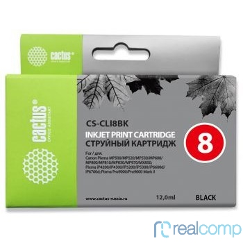 Cactus CS-CLI8BK Картридж струйный для Canon MP470/MP500/MP530/MP600/MP800/MP810/MP830/MP970, чёрный