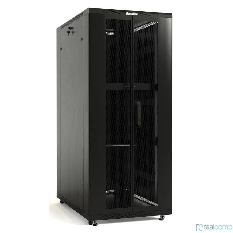 Hyperline TTB-4282-DD-RAL9004 Шкаф напольный 19-дюймовый, 42U, 2055x 800х 1200 мм (ВхШхГ), передняя и задняя распашные перфорированные двери (75%), ручка с замком, крыша нового типа, цвет черный