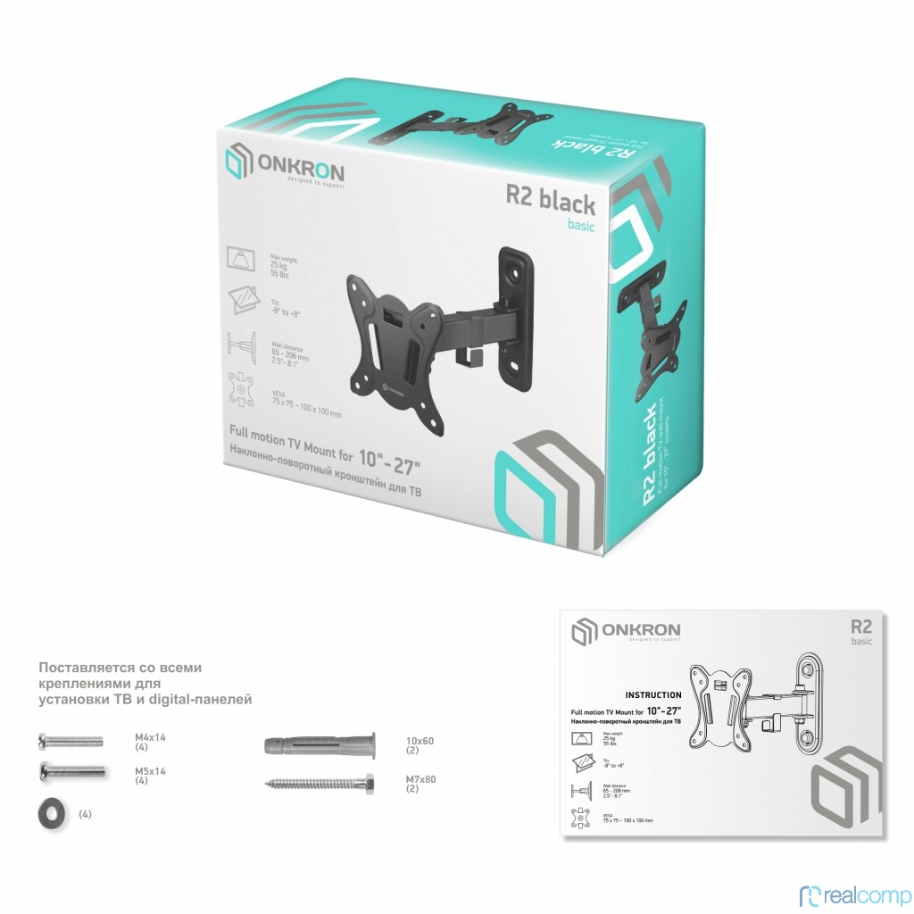 ONKRON R2 Roto чёрный Для телевизоров диагональю 10"-27" Максимальная нагрузка: 25 кг VESA: 75х75, 100х100 мм