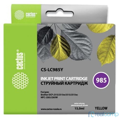 Картридж струйный Cactus CS-LC985Y желтый (15мл) для Brother DCPJ315W/DCPJ515W/MFCJ265W