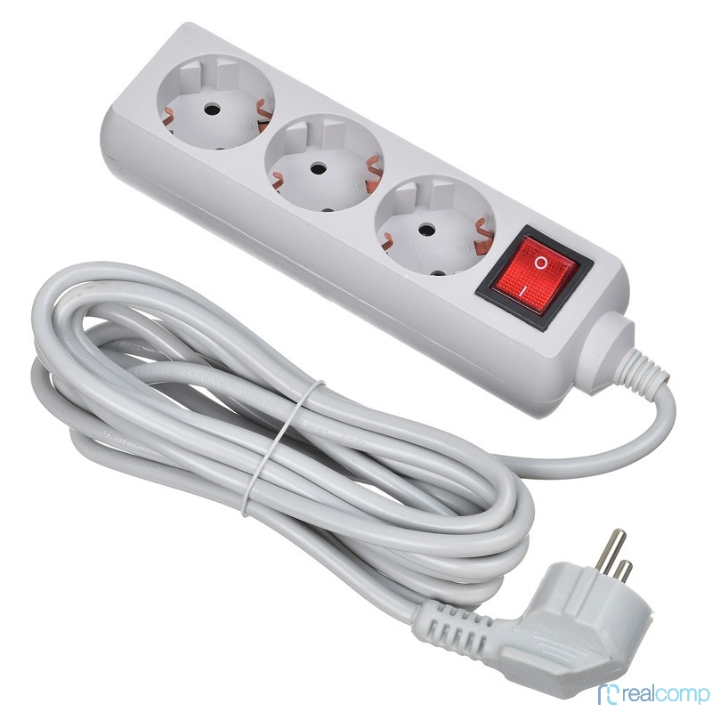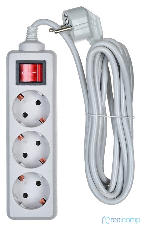 BURO Сетевой фильтр 3 розетки (300SL-3-G), 3м, серый (пакет ПЭ) {1087165}