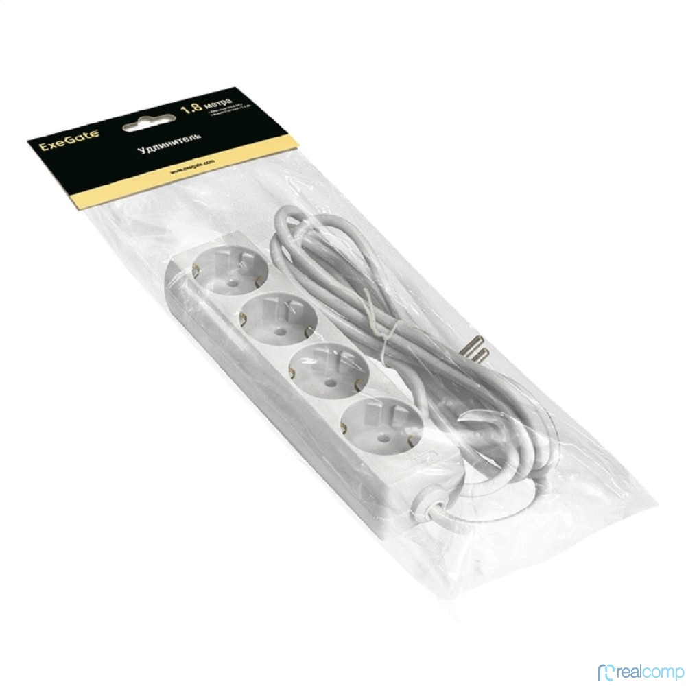 Exegate EX285812RUS Удлинитель ExeGate ECE-4-1.8W (4 евророзетки с заземлением, 1.8м, белый)