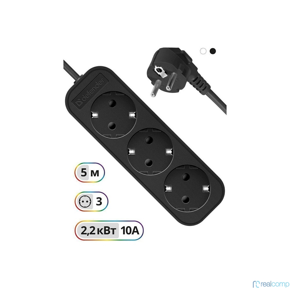 Defender Удлинитель M350 5.0 м, 3 розетки [99323], с заземлением