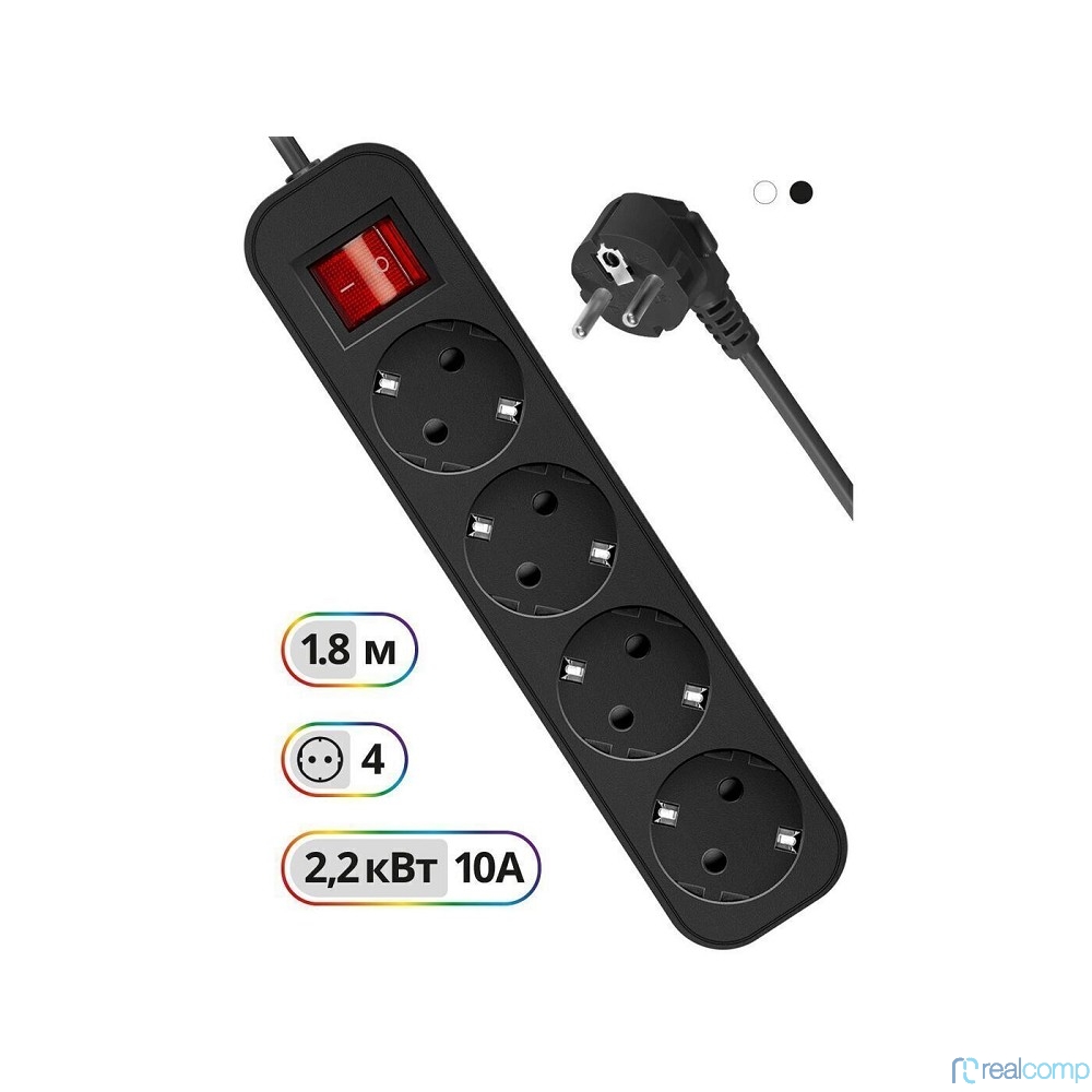 Defender Удлинитель G418 1.8 м, 4 розетки [99337] выключатель, с заземлением