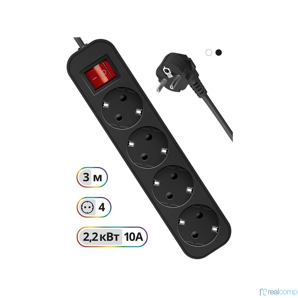 Defender Удлинитель G430 3.0 м, 4 розетки [99338] выключатель, с заземлением