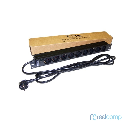 Lanmaster TWT-PDU19-16A9P-3.0 Блок розеток 19" 9 шт. без выключателя, 16A 250V, шнур питания 3.0 м
