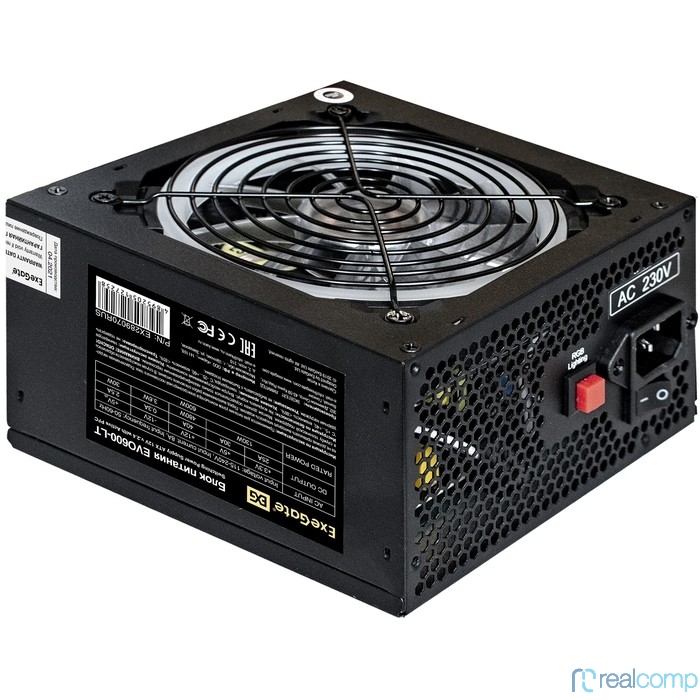 Exegate EX289070RUS БП 600W ExeGate EVO600-LT ATX, APFC, 12cm RGB fan, 24p, (4+4)p, PCI-E, 5SATA, 3IDE, black