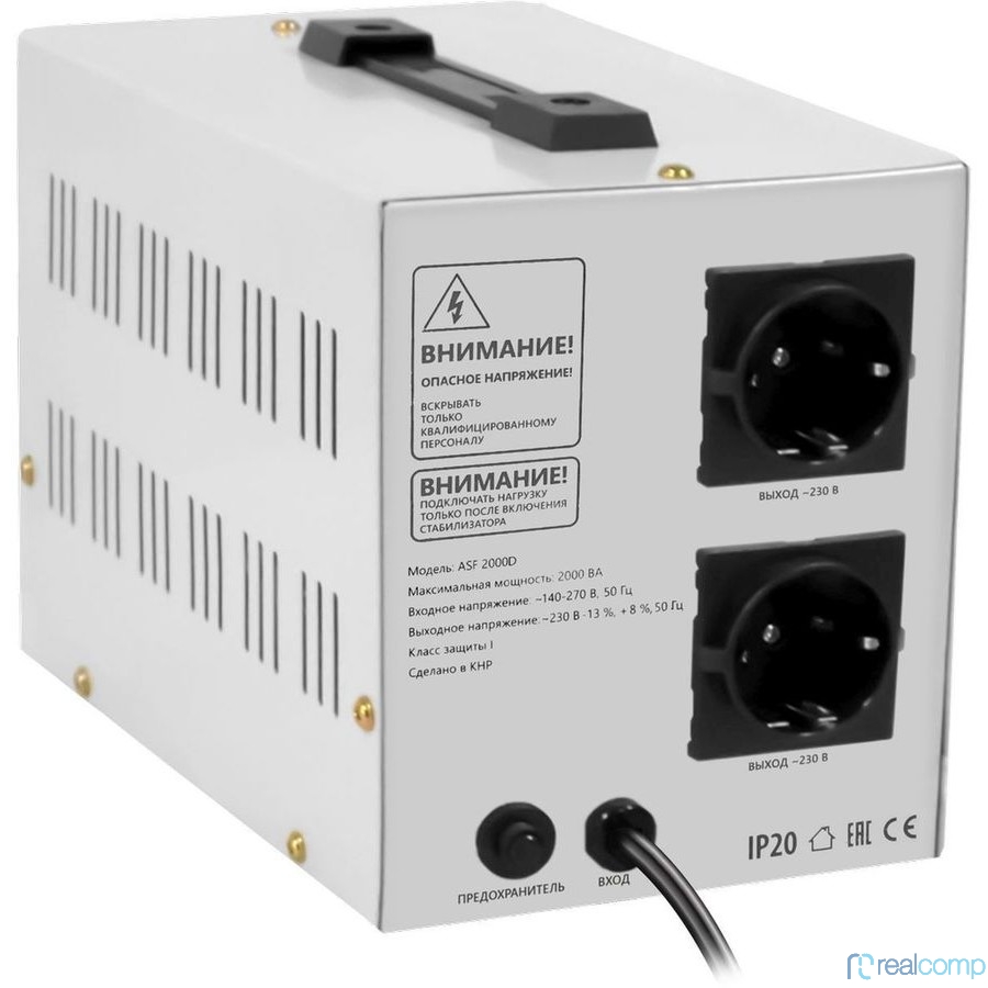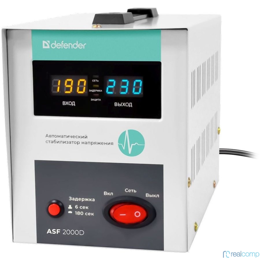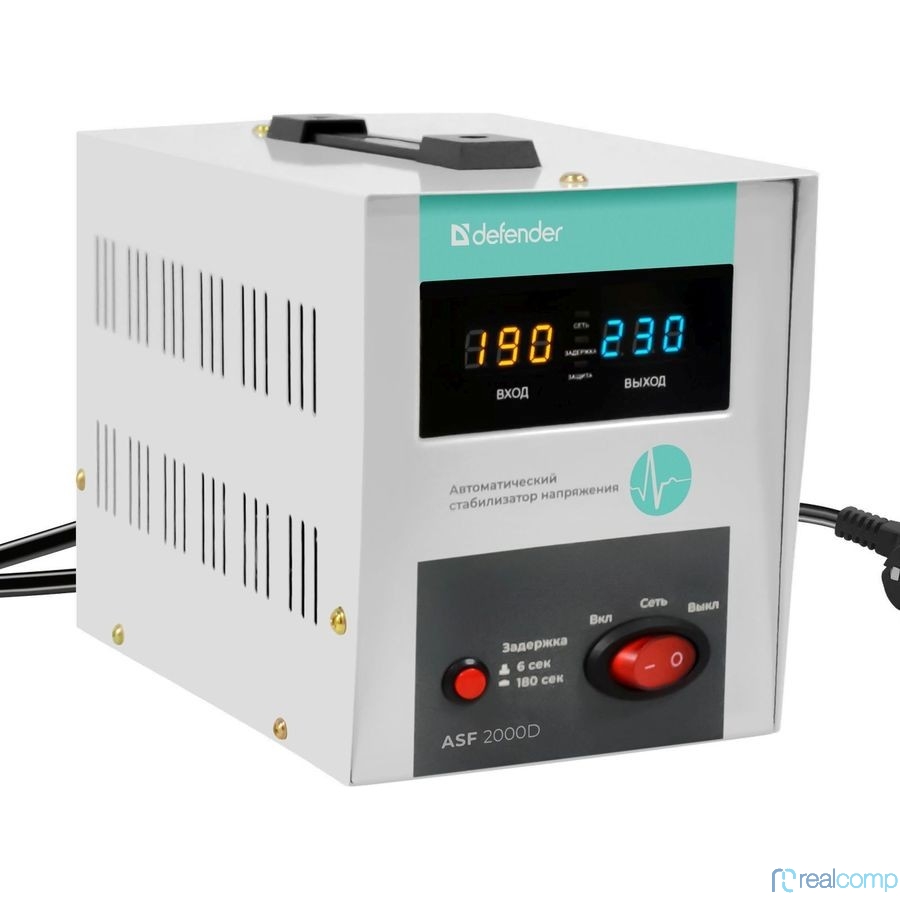 Defender Стабилизатор напряжения ASF 2000D напольный 1200Вт метал корпус, 2 розетки [99037]