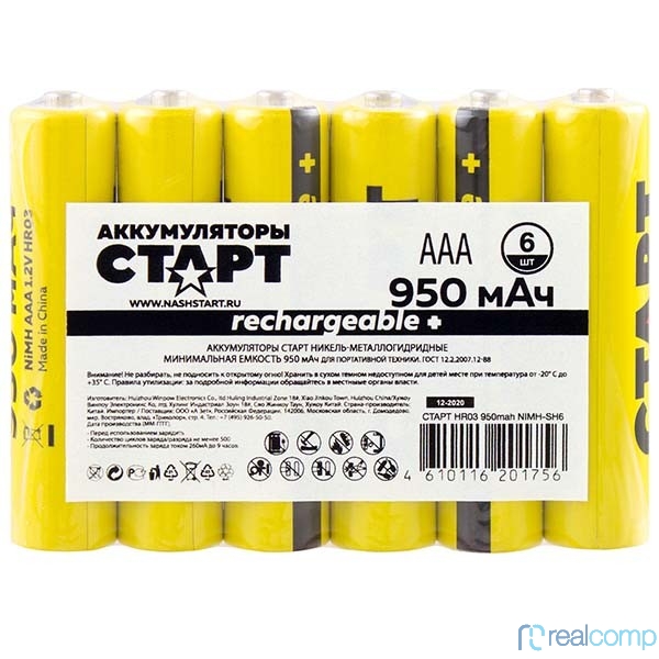 СТАРТ HR03 ААА 950mah NIMH-SH6 150/600 (6 шт. в уп-ке)