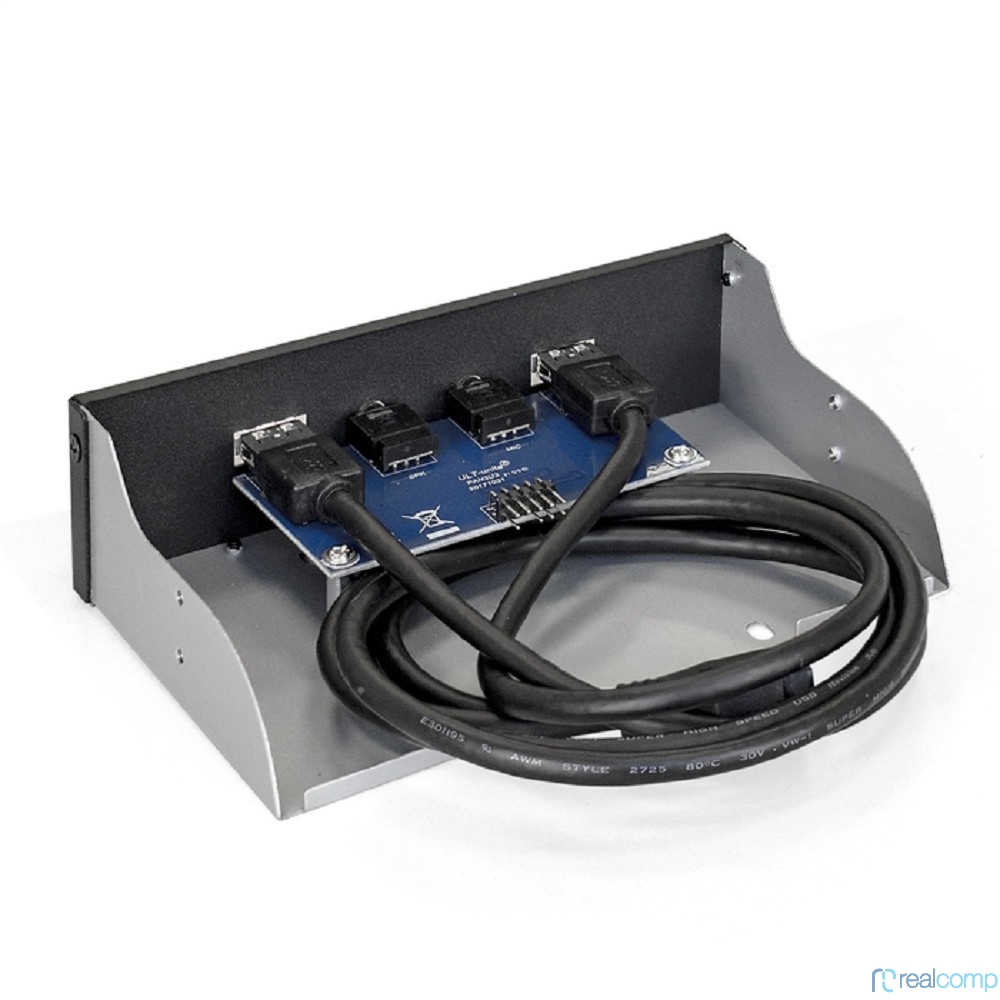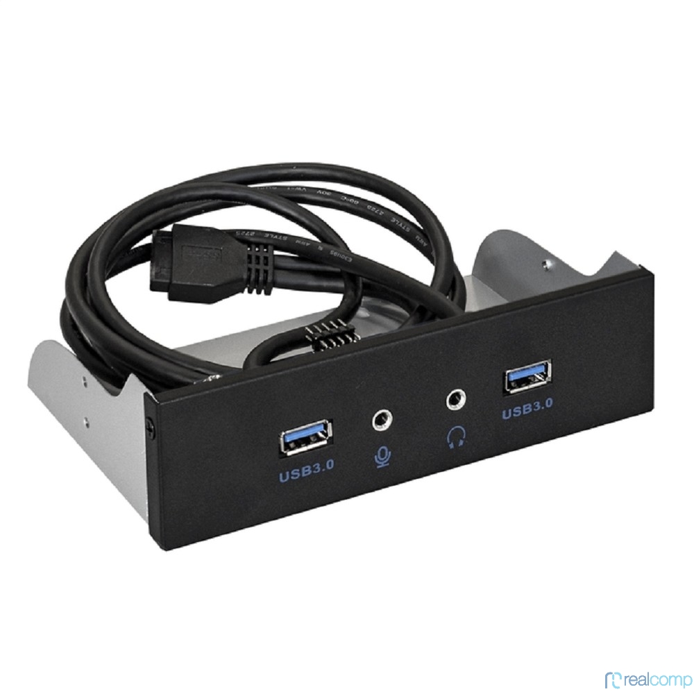 Exegate EX289291RUS Планка USB на переднюю панель ExeGate U5H-627, 5,25", 2*USB3.0+2*HD Audio, черная, металл, подсоед. к MB