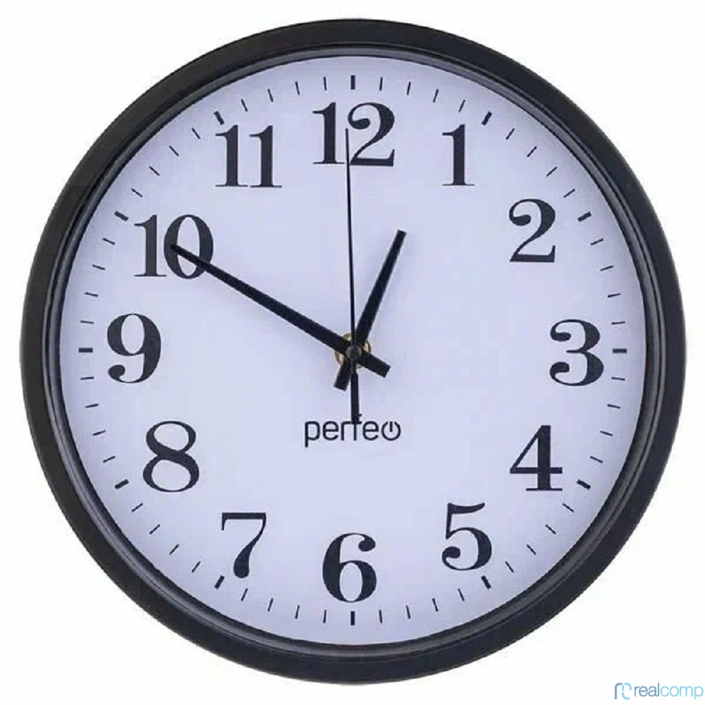 Perfeo Настенные часы "PF-WC-002", круглые д. 25 см, чёрный корпус / белый циферблат