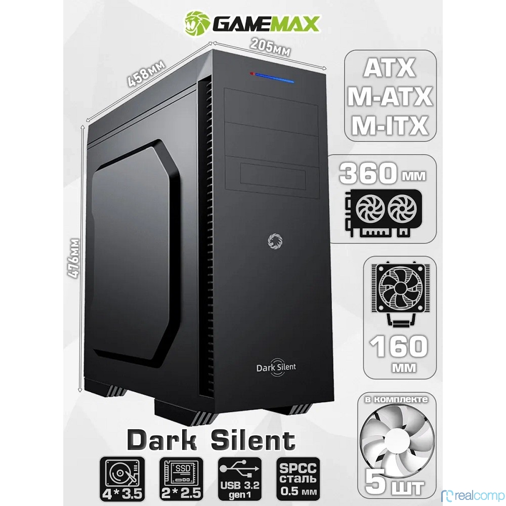 GameMax Корпус Dark Silent MFG.G532X без БП (Midi Tower, ATX, 2*USB3.0, HD Audio, вент. 5*120мм)