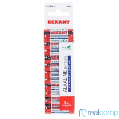 Rexant (30-1013) Батарейка алкалиновая AAA/LR03, 1,5В, 24 шт, блистер