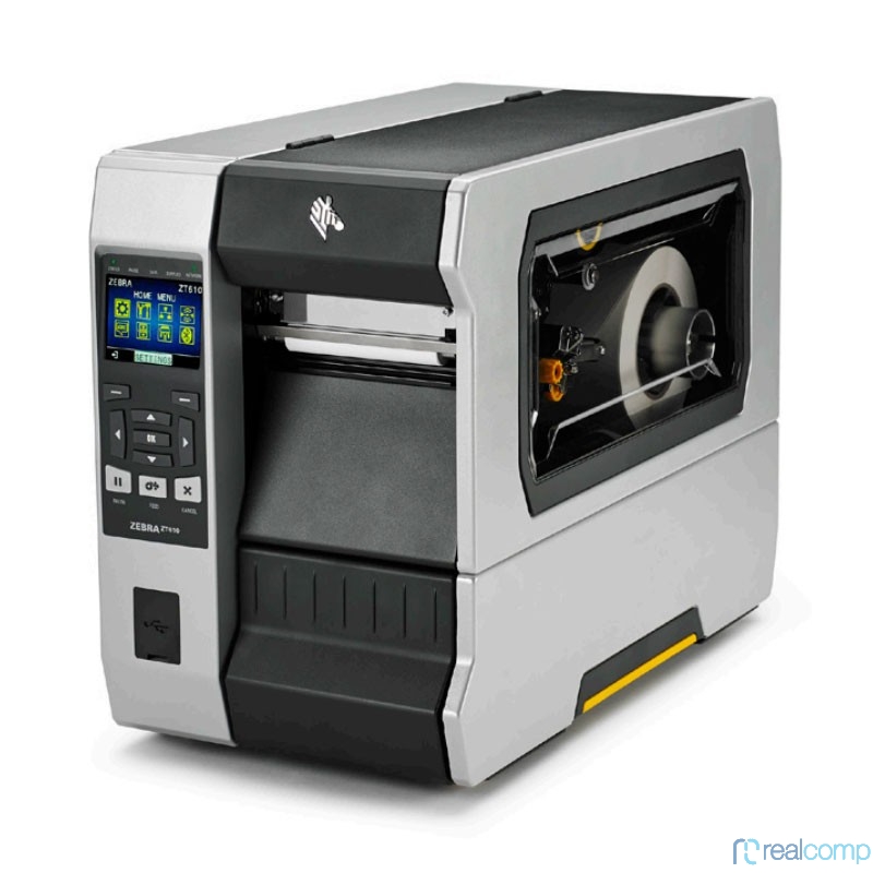 Zebra TT ZT610; 4", 203 dpi, Euro and UK cord, Serial, USB, Gigabit Ethernet, Bluetooth 4.0, USB Host, Rewind, Color Touch, ZPL