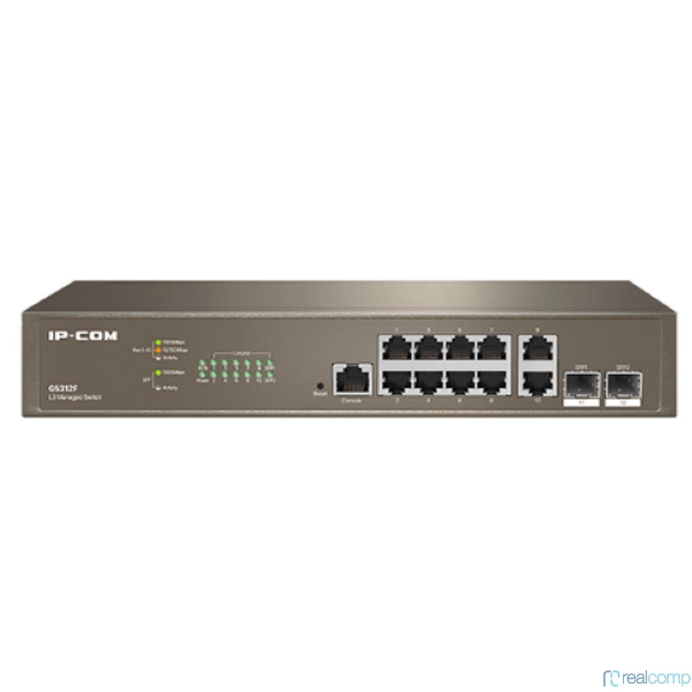 IP-COM G5312F Коммутатор управляемый в стойку, 10*1Gbit RJ45, 2*SFP 1Gbit, console port
