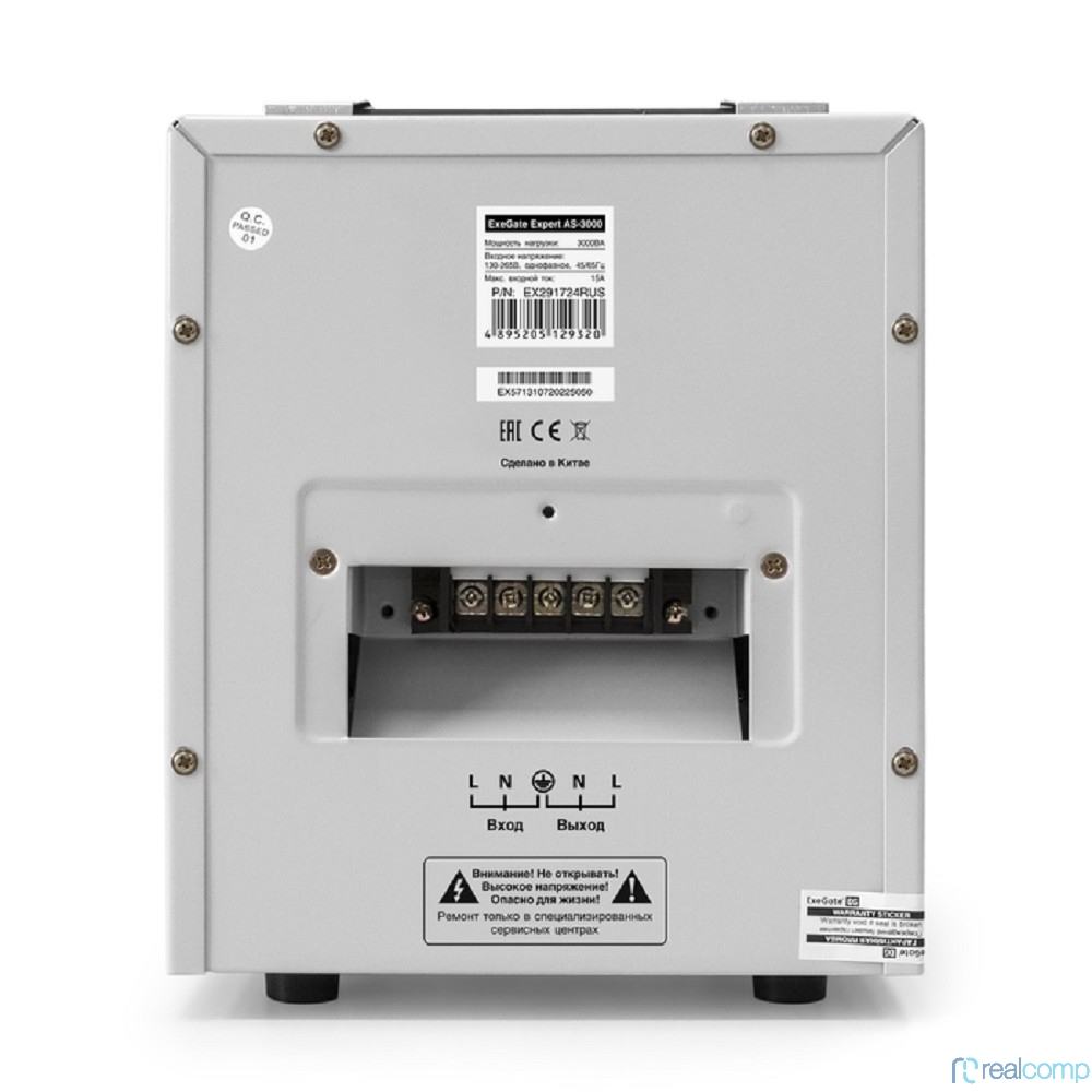 Exegate EX291724RUS Стабилизатор напряжения ExeGate Expert AS-3000 (3000ВА, вход 140...260В, двойная цифр. индикация вход/вых. напряжения, выход 220В±8%, КПД 98%, 5 уровней защиты, метал. корпус, клем