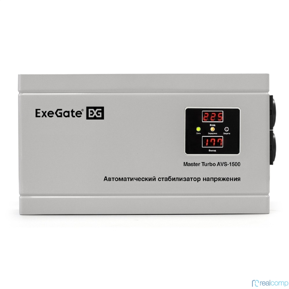 Exegate EX291746RUS Стабилизатор напряжения ExeGate Master Turbo AVS-1500 (1500ВА, 100-265В, цифр. индикация вход/вых. напряжения, 220В±8%, КПД 98%, 5 уровней защиты, задержка, усиленный метал.корпус,