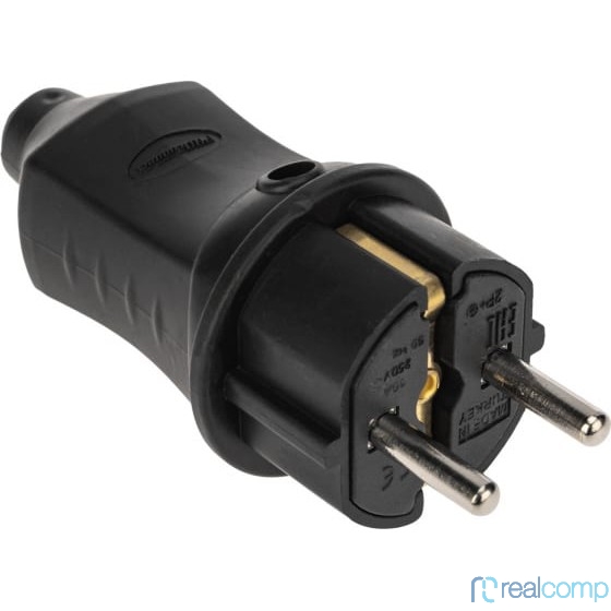 Proconnect 111-001-4 Вилка прямая влагозащищенная 2P+PE 230V, 16 А, IP44 каучук