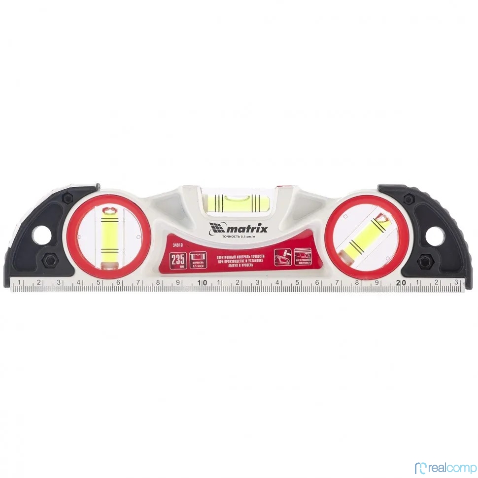 MATRIX Уровень алюминиевый литой, фрезерованный, 3 глазка, две ударные площадки, 235 мм [34910]