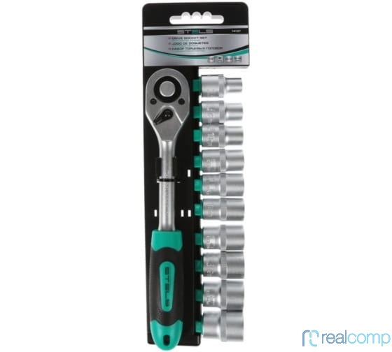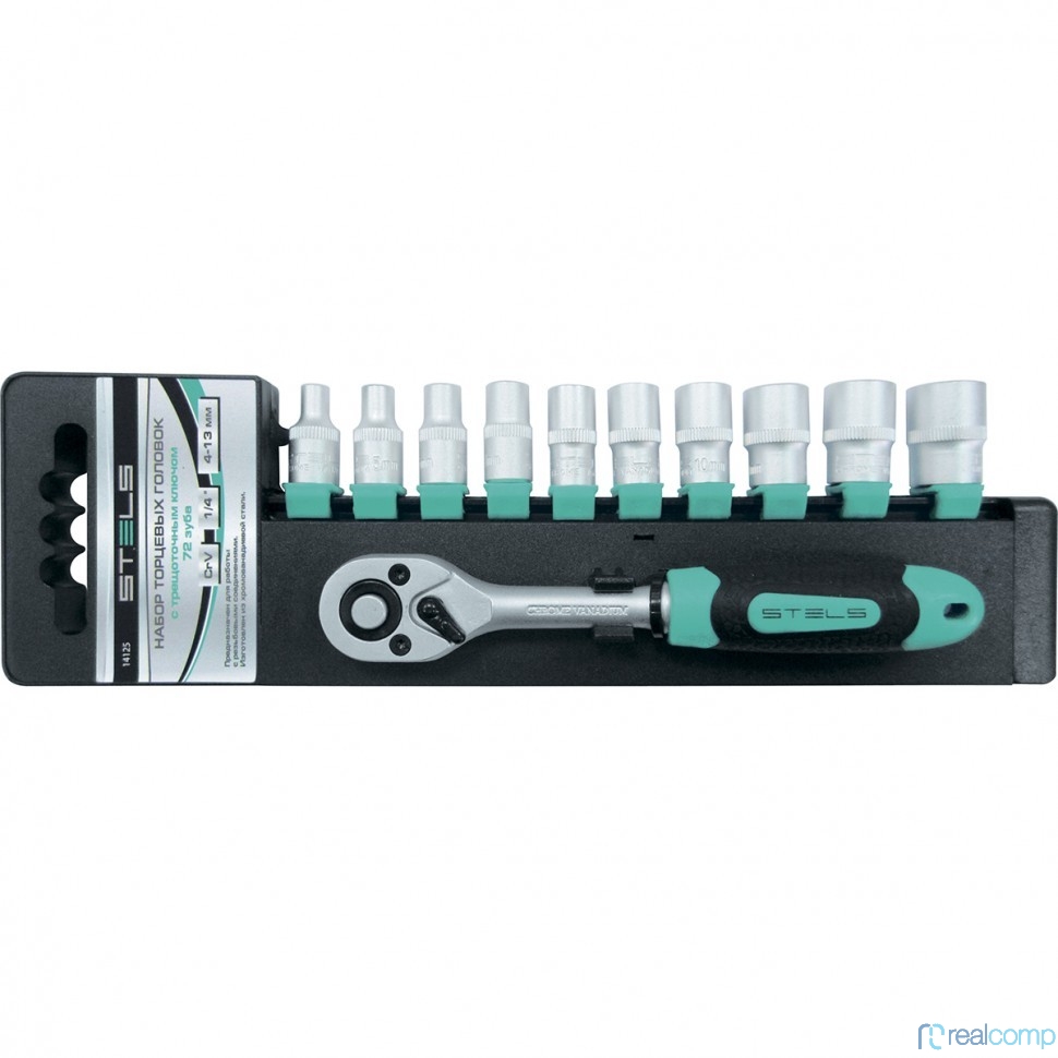 STELS Набор торцевых головок, 1/2", головки 10 - 22 мм, с трещот. ключом, CrV,11 предм. [14127]