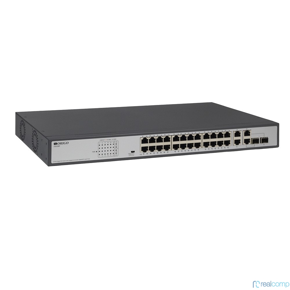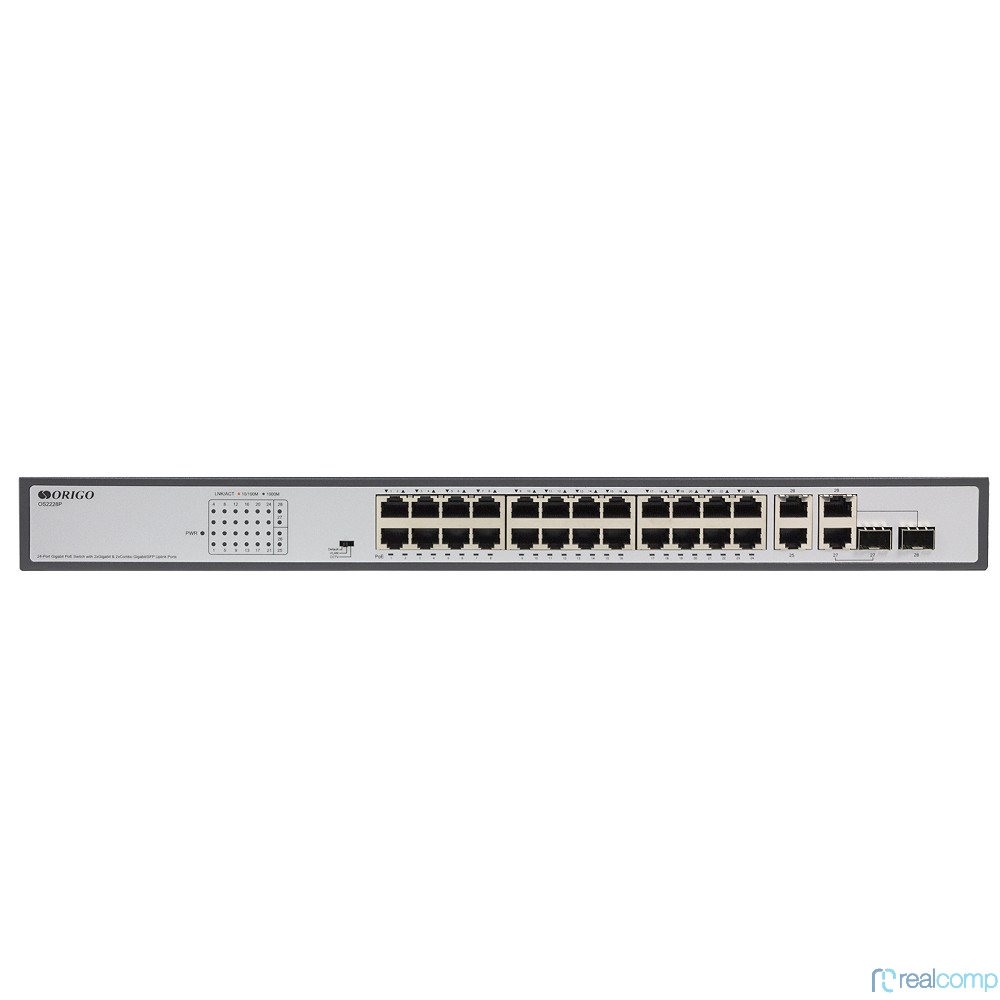 ORIGO OS2228P/370W/A1A Неуправляемый PoE-коммутатор 24x1000Base-T PoE+, 2x1000Base-T, 2xCombo 1000Base-T/SFP, PoE-бюджет 370 Вт