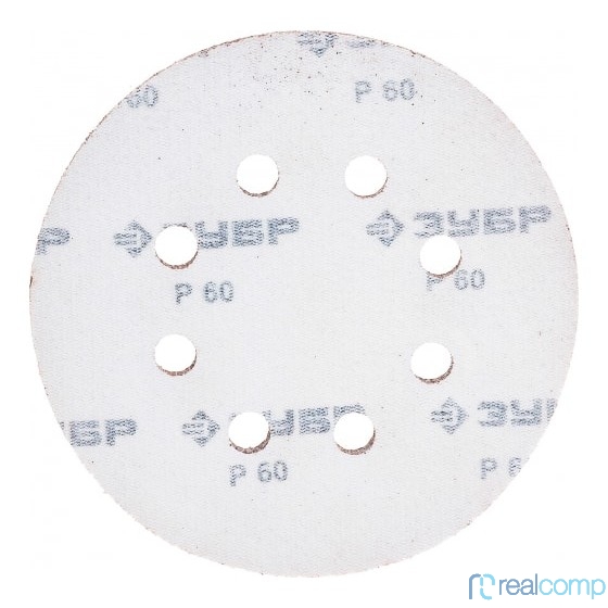 ЗУБР Круг шлифовальный "СТАНДАРТ" из абразивной бумаги на велкро основе, 8 отв., Р60, 125мм, 5шт [35350-125-060]