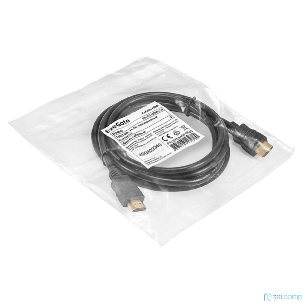 Exegate EX294684RUS Кабель HDMI ExeGate EX-CC-HDMI-2.0 (19M/19M, 2м, v1.4b, позолоченные контакты)