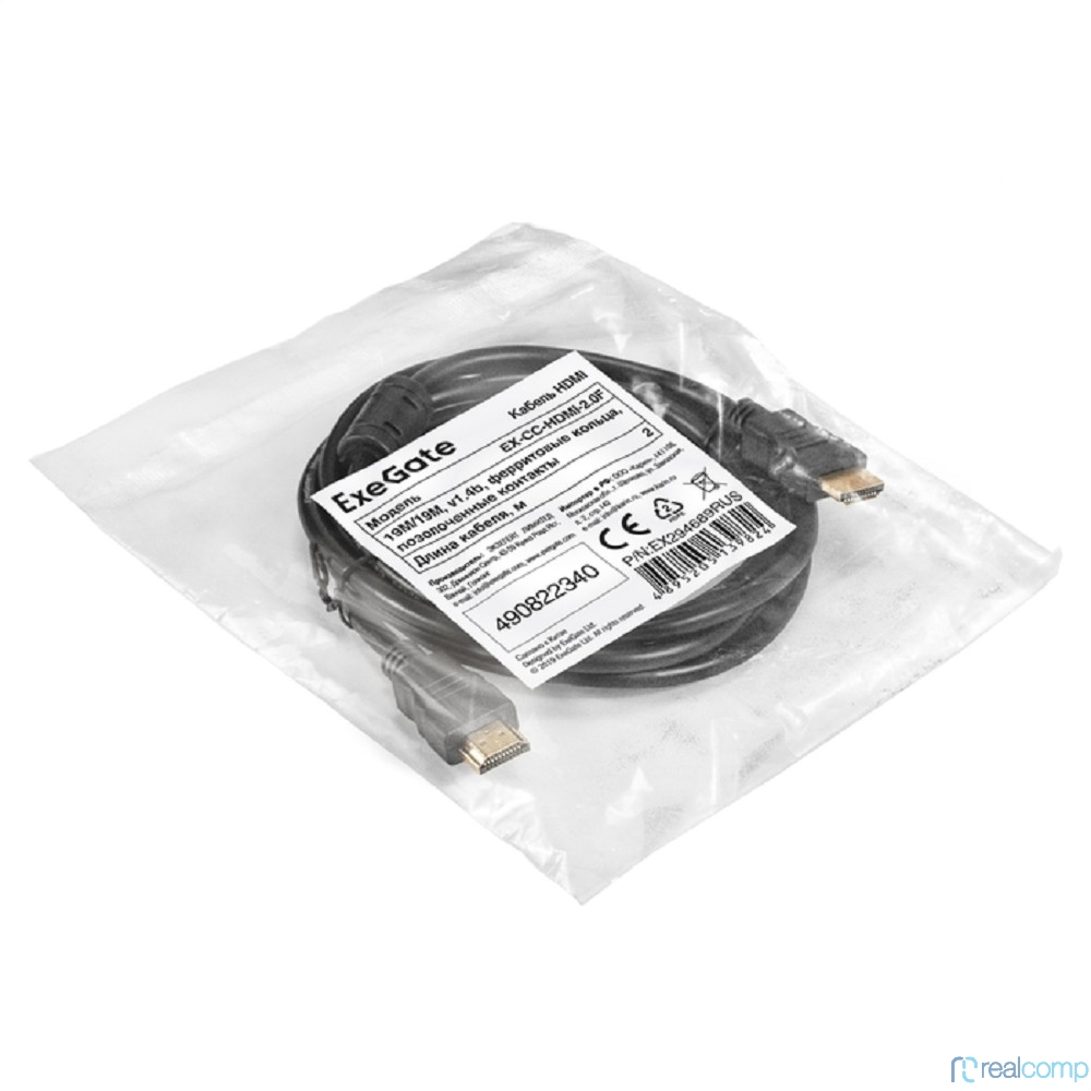 Exegate EX294689RUS Кабель HDMI ExeGate EX-CC-HDMI-2.0F (19M/19M, 2м, v1.4b, ферритовые кольца, позолоченные контакты)