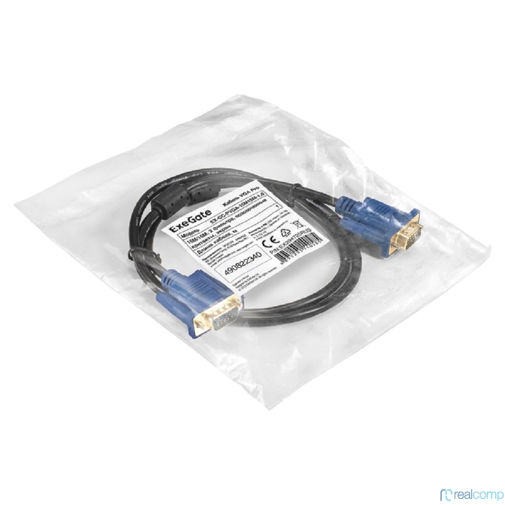 Exegate EX294725RUS Кабель VGA Pro ExeGate EX-CC-PVGA-15M15M-1.0 (15M/15M, 1м, 2 фильтра, позолоченные контакты, экран)
