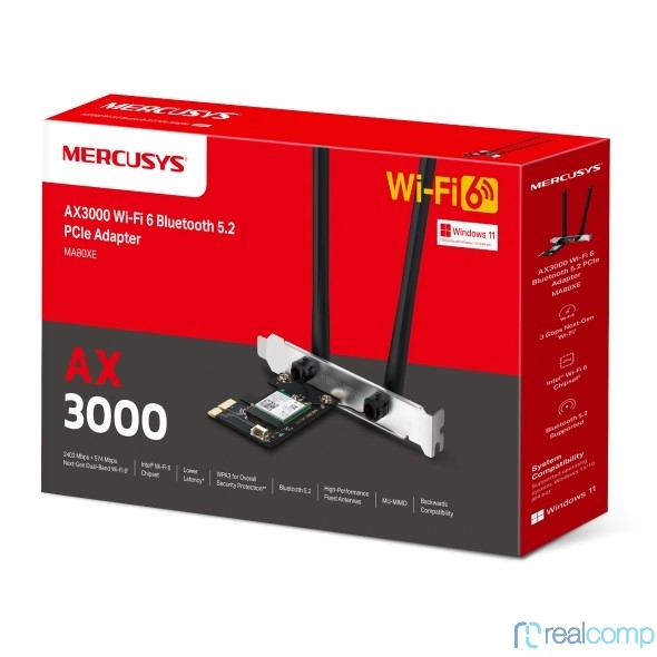 Mercusys MA80XE Адаптер PCI Express с поддержкой Wi-Fi AX3000 и Bluetooth 5.2