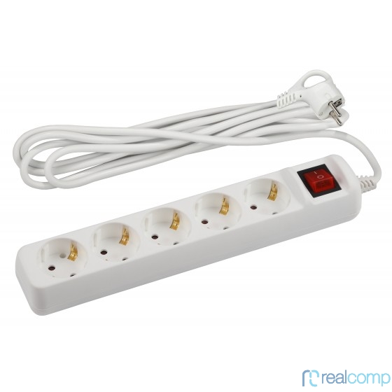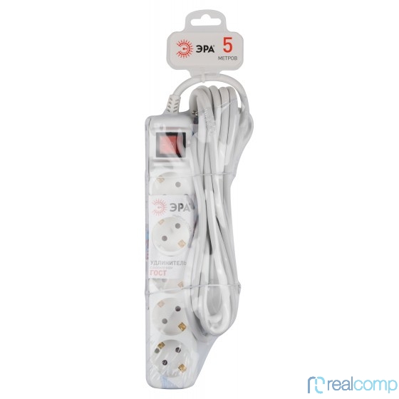 ЭРА Б0044045 Удлинитель электрический U-5es-5m-3x1,5 с заземлением с выключателем 5 розеток 5м ПВС 3x1,5мм2 16А