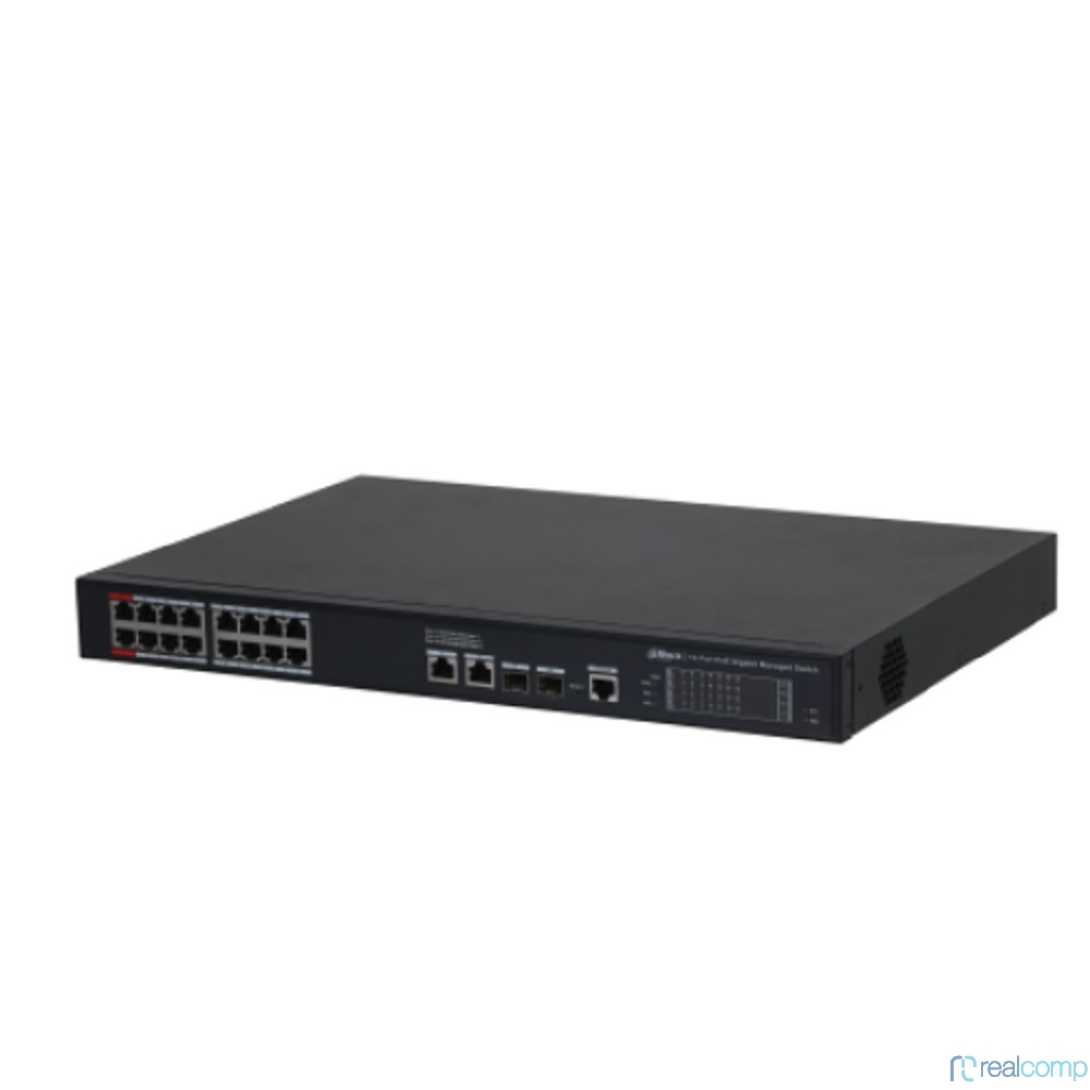 DAHUA DH-S4220-16GT-240 20-портовый гигабитный управляемый коммутатор с PoE, уровень L2, 16xRJ45 1Gb PoE, 2xRJ45 1Gb, 2xSFP 1Gb, суммарно до 240Вт, коммутация 56 Гбит/с, MAC-таблица 8к