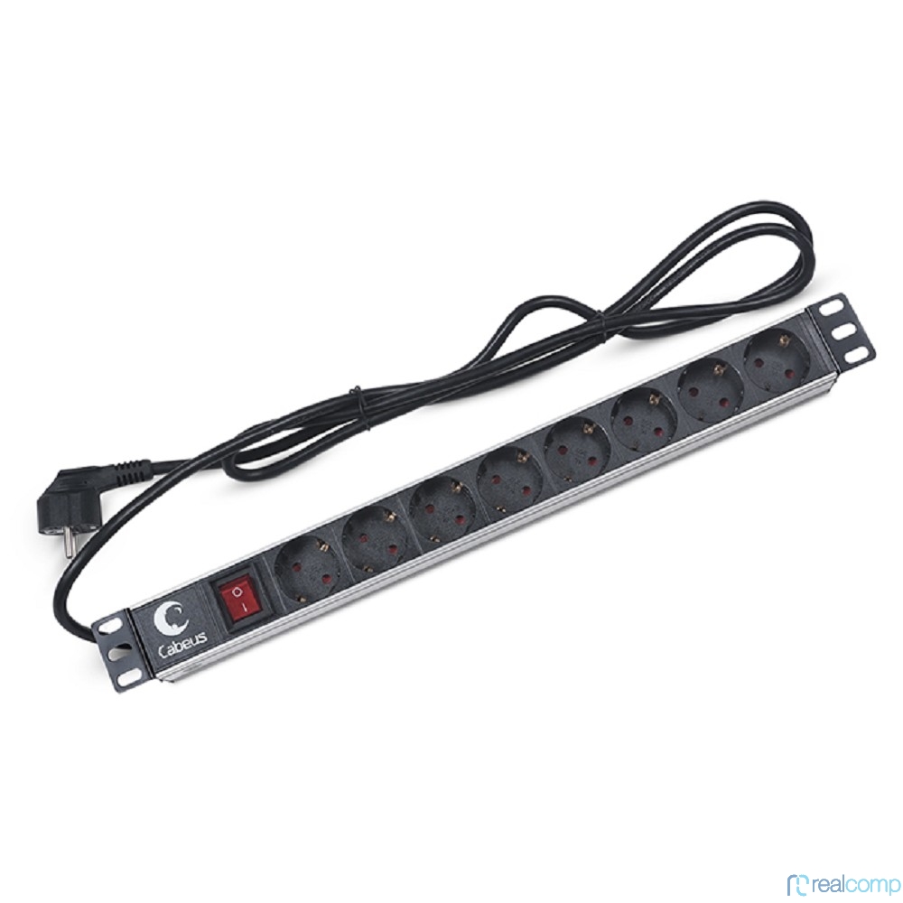 Cabeus PDU-8P-2EU Блок евророзеток для 19"шкафов, горизонтальный, 8 розеток, 16 A,выключатель, шнур 2м, алюминиевый корпус