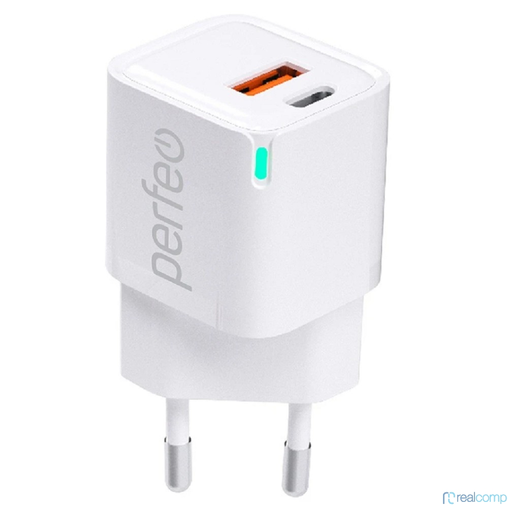 PERFEO Сетевое зарядное устройство с двумя разъемами USB-A+TYPE-C, GaN, 20W, белый (I4652)
