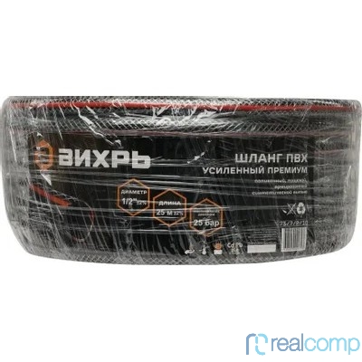 Шланг Вихрь ПВХ усиленный премиум,пищевой трехслойный армированный 1/2, 25м (чёрн-красн) 73/7/2/10