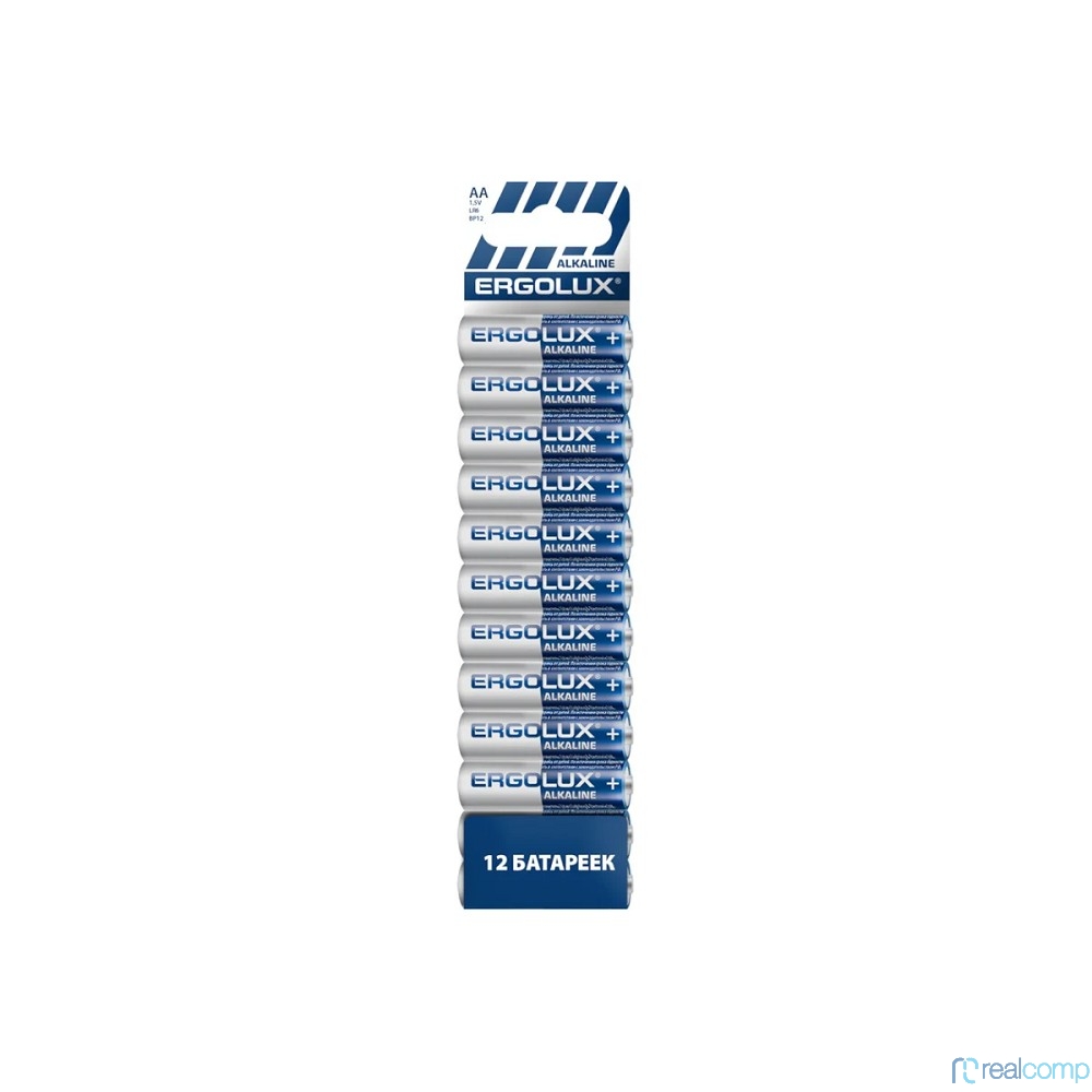 Ergolux Alkaline BP12 LR6 (ПРОМО, LR6 BP12, пальчиковая батарейка АА 1.5В)(12 шт. в уп-ке)
