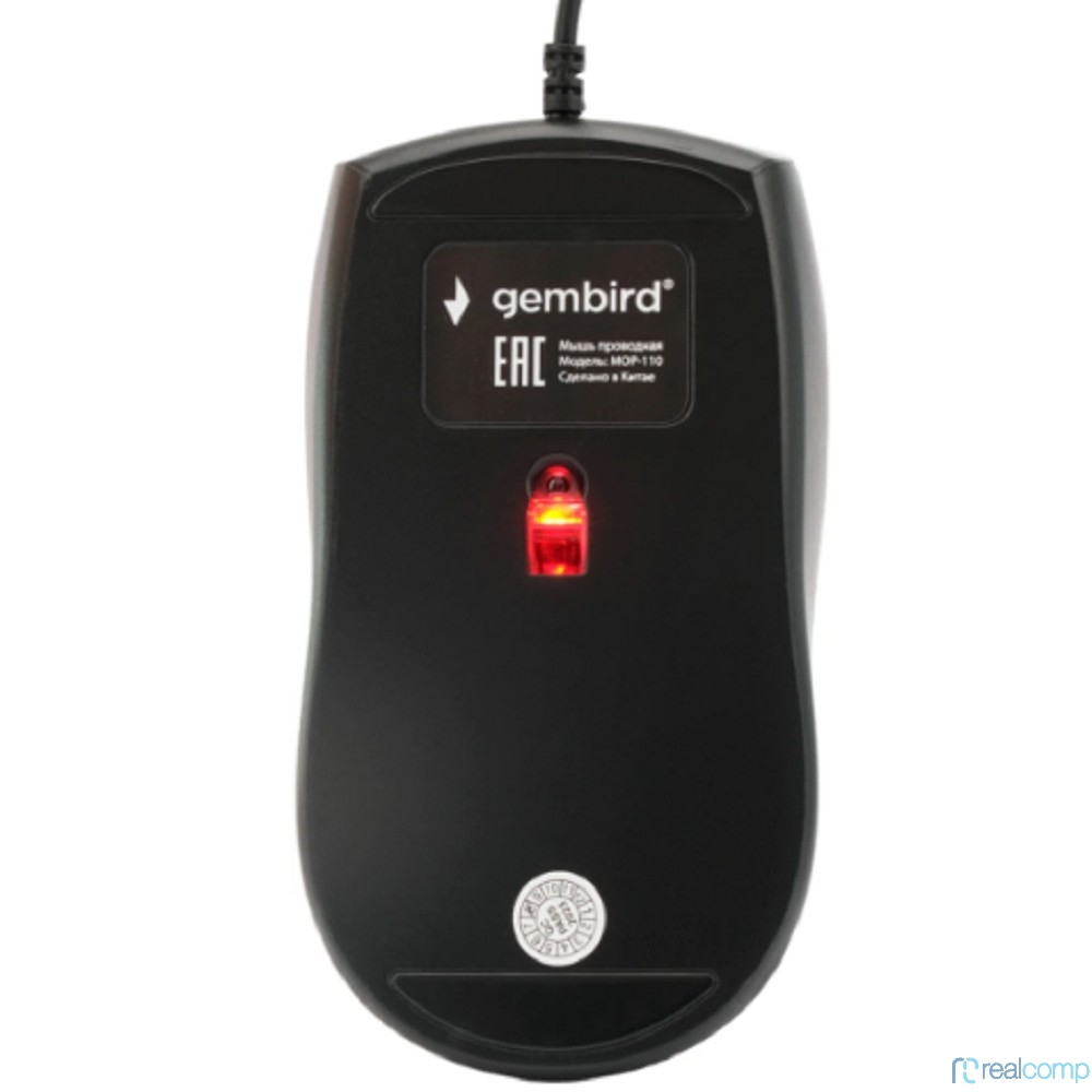Gembird MOP-110 Black {Мышь, USB, черный, 3 кнопки, 1000 DPI, кабель 1.8м}