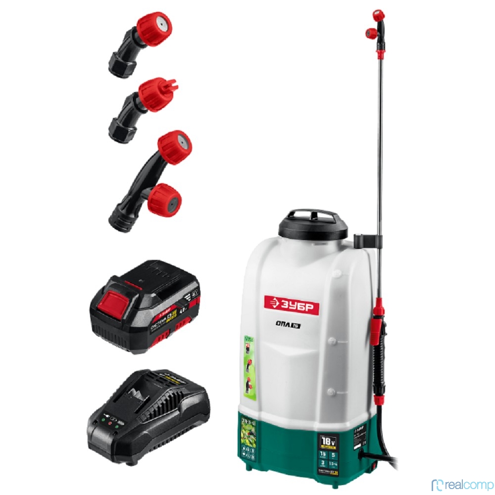 Опрыскиватель Зубр ОПЛ-15-41, аккумуляторный, ранцевый, 15л, зеленый/серый