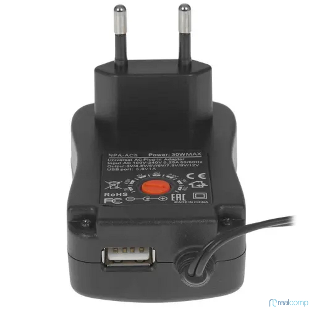 Gembird Блок питания универсальный 3В-12В, 30Вт, порт USB, 8 штекеров (NPA-AC5)
