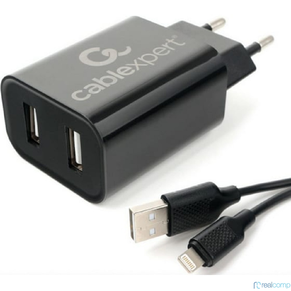 Cablexpert Зарядное устройство 12Вт, 2.4А, 2xUSB, кабель Lightning 1м, черный, коробка-блистер (MP3A-PC-36)
